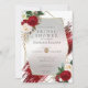Bridal Shower |   Bold and Different, romantic floral and modern faux metallic paint stroke and pair them together with a geometric frame. Bright crimson red and ivory white peonies with sage green foliage at the corners of a geometric gold wire frame  that has a translucent opalescent  centre showing the  bold shimmery scarlet paint stroke diagonally across the page. This bridal shower design certainly has a statement - Contemporary font for your details.     Design created for the BarefootBride™ by  © WhimsicalArtwork™ Customise text, font style, colour and size.   We created this  template is to make it easy for you to personalise with your own information.  This is part of a complete Wedding Stationery Suite with matching wedding, baby shower and other event stationery.