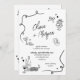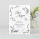This wedding invitation features a whimsical and playful scribble doodle design, making it a fun and unique all-in-one invitation. The front showcases the couple's names in a modern script font, accompanied by hand-drawn doodles of celebratory items like wine glasses, rings, and a cake. The back there is a QR Code that provides essential wedding details. The invitation can be made even more vibrant by changing the colour of the doodle emblems and text, adding a personalised touch to this charming design. You can edit it by clicking the "Edit using design tool" button.