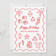 Send Christmas cheer with a modern twist! This whimsical holiday card features playful hand-drawn artiscic sketch doodles in a festive red and white palette with a wavy border. Customise your greeting, names, and date on the reverse to make it uniquely yours. A fun and festive way to spread joy this season.