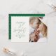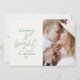 Modern script 1 photo merry & bright christmas card. Modern green polka dot backer.