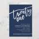 MODERN SCRIPT 21st birthday party dark navy blue Invitation