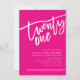 MODERN SCRIPT 21st birthday party hot pink white Invitation