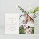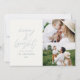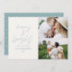 Modern script 2 photo merry & bright dusty blue Christmas card. Modern polka dot backer.