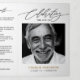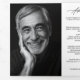 Modern black and white celebration of life trifold program providing a refined and heartfelt way to honour a loved one's memory with a sophisticated and timeless layout. This all-in-one funeral program features a bold, full-panel photo on the cover alongside elegant script and serif typography, creating a clean yet emotional tribute. The design includes space for a name and life dates, with interior panels dedicated to a structured order of service, obituary section, and a meaningful poem or words of comfort. The final panel is reserved for acknowledgements and reception details, allowing families to express gratitude with grace. With its monochrome palette, sleek script headings, and ample room for personalised content, this folded layout is ideal for families seeking a polished and respectful funeral program design that balances beauty with functionality.