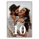 Celebrate your love story with these modern wedding table number cards, a sophisticated addition to your reception decor that adds a personal touch to each table. These cards feature a striking design, showcasing two photos of the happy couple – one on each side - capturing cherished moments from your journey together. The elegant handwritten script adds a touch of romance, making each table number a beautiful keepsake for you and your guests. These cards not only guide your loved ones to their tables but also tell the story of your love in a modern and stylish way. Elevate your wedding reception with these personalised table number cards, where each number becomes a chapter in the beautiful tale of your union.