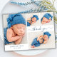 Modern Elegant Calligraphy Script 4 Photo Collage Baby Boy Thank You Card. Features a beautiful handwritten calligraphy thank you swash tail font script and your personal message. Great for baby boy or baby girl. Easy to personalise with your baby photos and details.