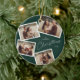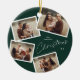 Modern Script 4 Photo Collage Green Christmas Ceramic Ornament