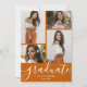 Add your favourite four photos to the front of these graduation announcements featuring the word graduate, your graduate's name and class year in chic lettering on a burnt orange school colour background. Personalise your details are on the back. MORE designs and colours done in our store including party invitations, save the date cards and postcards.