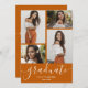 Add your favourite four photos to the front of these graduation party invitations featuring the word graduate, your graduate's name and class year in chic lettering on a burnt orange school colour background. Your party details are on the back. MORE designs and colours done in our store including announcements, save the date cards and postcards.