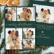Modern Script 5 Photo Collage Green Christmas Holiday Card