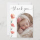 Express gratitude to those who made your baby shower truly special with our beautifully designed thank you card. This elegant card features a timeless white background, setting the stage for your baby's photo framed within a delicate watercolor arch adorned with vibrant red flowers. At the top of the arch, a heartfelt "Thank You" is written in a sophisticated modern script, adding a touch of warmth and personal charm. Below the photo, your baby's name is displayed in refined, elegant lettering. Press the button to customise the card, you will be delighted!