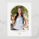 Celebrate your graduate’s milestone in style with this Modern Script Arch Photo Blue Graduation Party Foil Invitation. Invite your friends and family with this card that features a chic modern handwritten script, trendy arch layout, and a custom photo, this design blends sophistication with a personal touch. Perfect for high school or college graduation celebrations, this invitation sets the tone for an unforgettable event. Personalise with your graduate’s name, class year, and party details in a deep rich navy marine blue. A stylish choice for graduation parties, open house celebrations, or virtual gatherings, the invitation boasts a gold, silver or rose gold foil on the front.