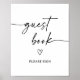 Invite baby shower guests to sign your guest book with this simple and elegant table sign, featuring a modern script with heart.