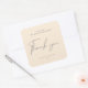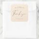 Modern Script Beige White Wedding Favour Candle Square Sticker