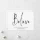 Modern Script Believe Black White Holiday. Believe is in a stylish handwritten style and easily personalise your greeting and name. Shown in black text on white. Changes to colours of text and background can be made if you wish via the edit further option. Also available digitally.
