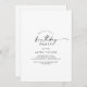 This modern script birthday party invitation is perfect for a minimalist birthday party. The simple black and white design features unique industrial lettering typography with modern boho style. Customizable in any color. Keep the design minimal and elegant, as is, or personalize it by adding your own graphics and artwork.