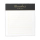 To do List Notepad features custom name in gold modern script font style with custom text in gold modern sans serif font style, on black with gold stripe upper border, on white background.