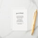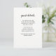 This simple and stylish wedding guest details card features modern black script typography on a clean white background, for a minimalist look that still makes a statement. You can use these cards to include information about your wedding reception, driving directions, accommodations, and anything else you need your guests to know.