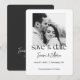 Announce your special day in timeless style with this modern script black and white photo save the date card. Featuring elegant flowing typography paired with your favourite engagement photo, this minimalist wedding announcement is perfect for couples planning a chic, contemporary celebration.