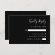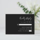 This simple modern wedding RSVP enclosure card features white text on a black background. The title appears in stylish handwriting calligraphy. Customize the remaining text in sans serif font. The reverse side is solid black.