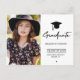 Trendy chic black typography script and graduation hat making a stylish graduation party invitation announcement postcard. ++++++++++ Easy to personalise with your photo and details on both sides!