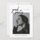 A minimalistic and modern black and white photo graduation party invitation, designed with elegant script lettering. Personalise with photos and info on the front and back of the card.