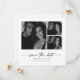 Share your special moment with a save-the-date that feels simple and meaningful. This black and white three-photo design lets your favorite memories shine, while the soft script adds a gentle, elegant touch. The clean layout keeps everything easy to read and beautifully balanced. It is a lovely way to announce your wedding in a style that feels personal, timeless, and truly yours.