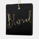 Modern Script Blessed Christmas Gold Black Ceramic Ornament