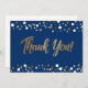 Modern script Blue Gold Confetti Graduation Thank You Card