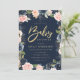 Celebrate the mother-to-be with this elegant navy and blush design which features floral wreath and elegant faux gold script.