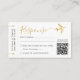 Elegant script black and gold aeroplane ticket boarding pass MINI RSVP Response Card with QR code, a perfect addition to a destination wedding or aviation travel theme reception invitation for the globetrotter couple having a wedding abroad.
