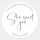 Modern Script Bridal Shower She Said Yes Classic Round Sticker