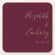 Modern Script Burgundy Gold Wedding Square Paper Coaster