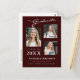 Modern 3 photo graduation announcement postcards. This custom design combines handwritten, calligraphy style script with modern text in white and light grey on a stylish burgundy red background. The back of the design offers customisable text fields for your announcement and graduates information. To see more items like this, visit my store here at "www.Zazzle.com/LakeViewCardCo". Thanks