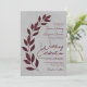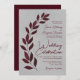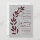Modern Script Burgundy Leaves on Grey Wedding Invitation