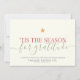 Modern business holiday card with elegant script calligraphy reading 'TIS THE SEASON FOR GRATITUDE in pastel red and green Christmas colours. Below is space for your custom message as well as additional space on the back over your corporate logo. Perfect simple corporate holiday card with a contemporary, trendy typography design under a watercolor orange star.