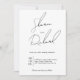 Looking for a modern and minimal wedding invitation? Look no further! Our elegant black and white wedding invitation features your names in stylish script calligraphy. The back is of white colour.