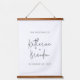 A modern yet elegant wall tapestry for minimal wedding featuring a script calligraphy lettering of newly wed's name and a serif font.