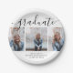 A modern and chic graduation paper plate in calligraphic and sans serif fonts with three photos for your paper plate. Available in a variety of colours.
