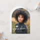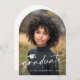 Arch shaped photo announcement card featuring your photo, a graduation cap and the text "graduate" in a modern, elegant script font. Add an additional photo and a custom message on the back.