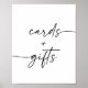 Show baby shower guests where to leave their cards and gifts with this simple and elegant table sign, featuring a modern script with heart flourish.