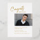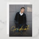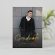 Real gold foil modern script graduation announcement and invitation with photo, more photo and grad party information on the back, simple and casual.
