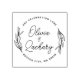 Stylish rustic modern circular rubber stamp features greenery in the circle shape with curves lettering script and modern text.