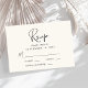 Chic light cream wedding RSVP card featuring "Rsvp" in a modern script, simple elegant typography and your names and date joined together by a heart on the back.