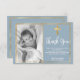 Modern Script Cross Dusty Blue Baptism Photo Thank You Card