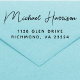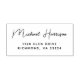 Modern custom return address rubber stamp featuring your name in a stylish script and your address in simple typography.