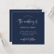 This minimalist, dark navy blue and white wedding invitation features modern handwritten script typography and a simple and stylish layout.