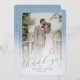 Modern Script Dusty Blue 2-Photo Wedding Thank You