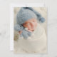 A simple modern Baptism invitation features a dusty blue card with white typography to personalise with your key details including your child's name, date, time and location of baptism, reception and RSVP information. The reverse side features a photo of your baby