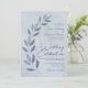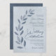 Modern Script Dusty Blue & Pewter Leaves Wedding Invitation